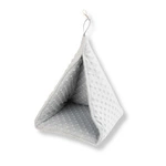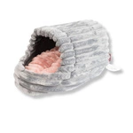 Wielka, przytulna, welurowa budka iglo dla świnek morskich z puszystą poduchą szara w kolorowe łapki