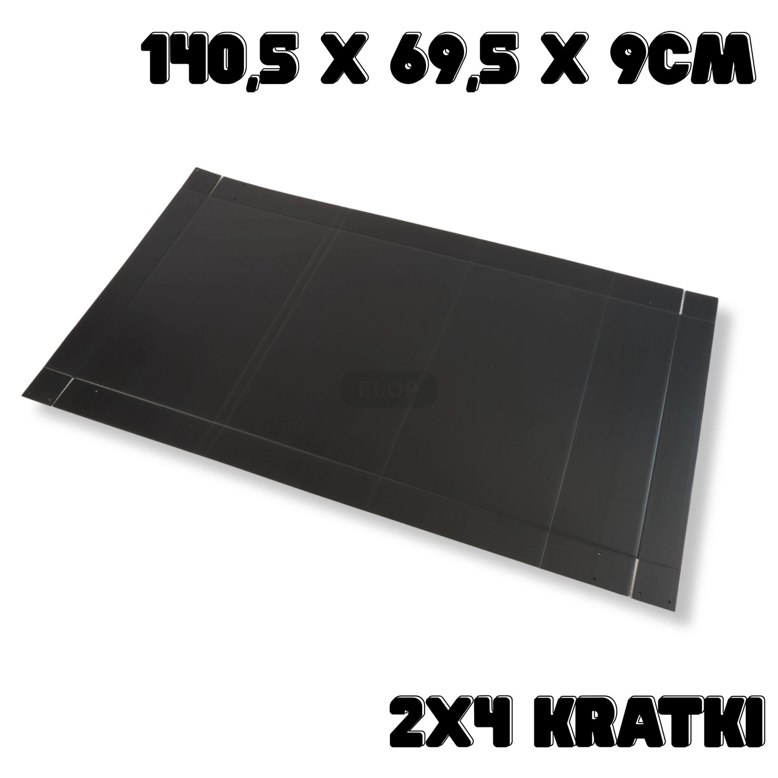 Przedmiotem oferty jest kuweta do klatki/kojca 2x4 kratki w standardowym systemie chińskich kratek o wymiarach 35x35 cm. Po złożeniu tworzy dno o wymiarach ok. 140x69,5x(h)9 cm, pasujące do typowych systemów produkowanych w chinach.