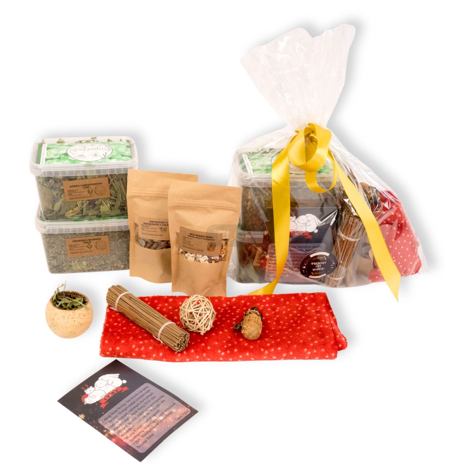 Szukasz pomysłu na wyjątkowy prezent dla swojej świnki morskiej? 🎁 Ten zestaw świąteczny został przygotowany tak, aby sprawić radość Twojemu małemu przyjacielowi i zapewnić mu zdrową zabawę, komfort oraz coś pysznego do chrupania.