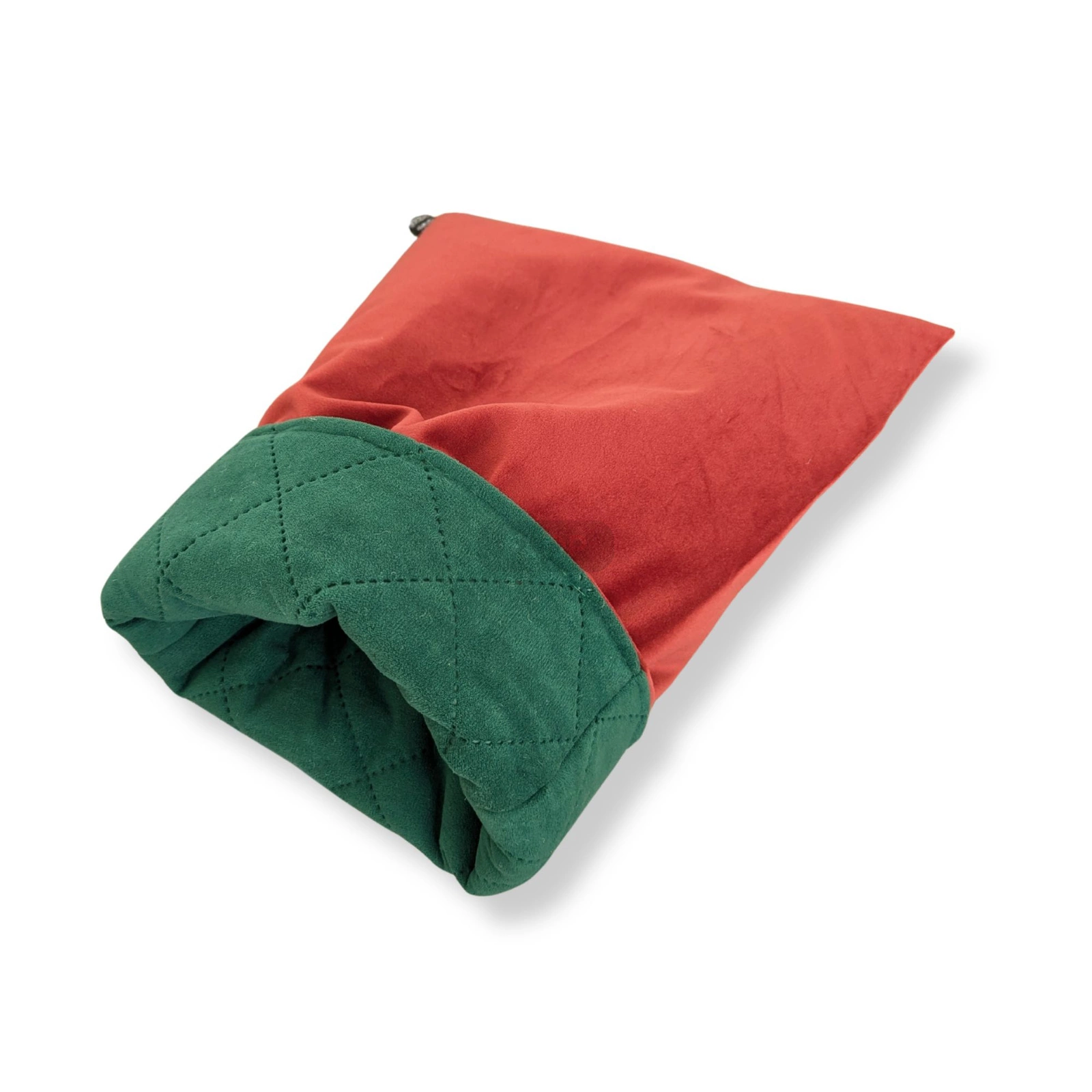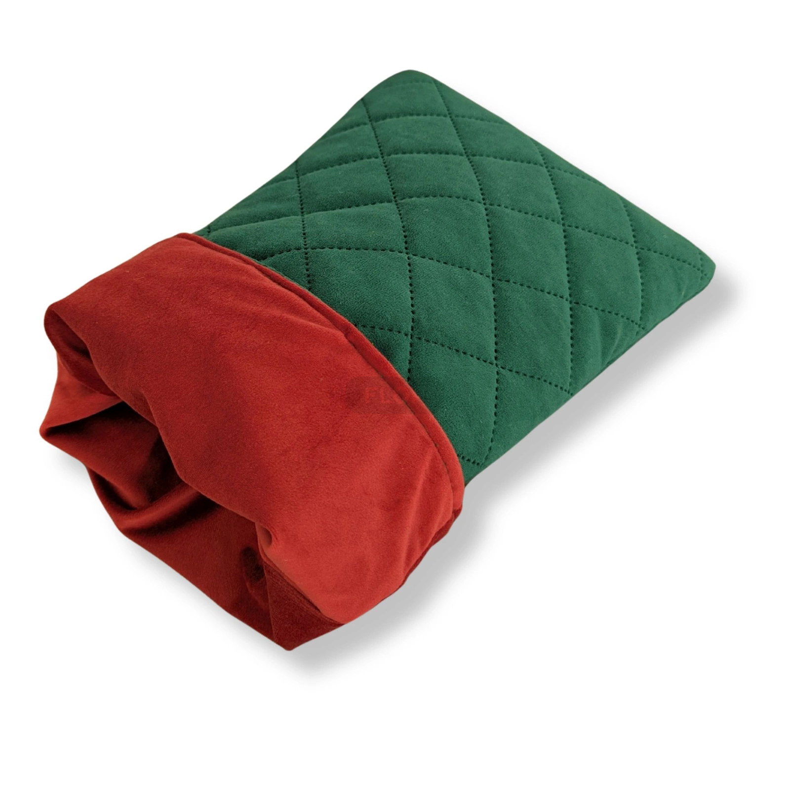 Tegoroczna edycja świąteczna została wykonana z połączenia dwóch luksusowych tkanin tapicerskich Magic Velvet – pikowanej w kolorze głębokiej zieleni oraz gładkiej, ciepłej czerwieni inspirowanej barwą świątecznego grzanego wina. Wnętrze śpiworka wypełnia miękka owata, dzięki czemu całość jest przyjemnie sprężysta i skutecznie izoluje od chłodnego podłoża.