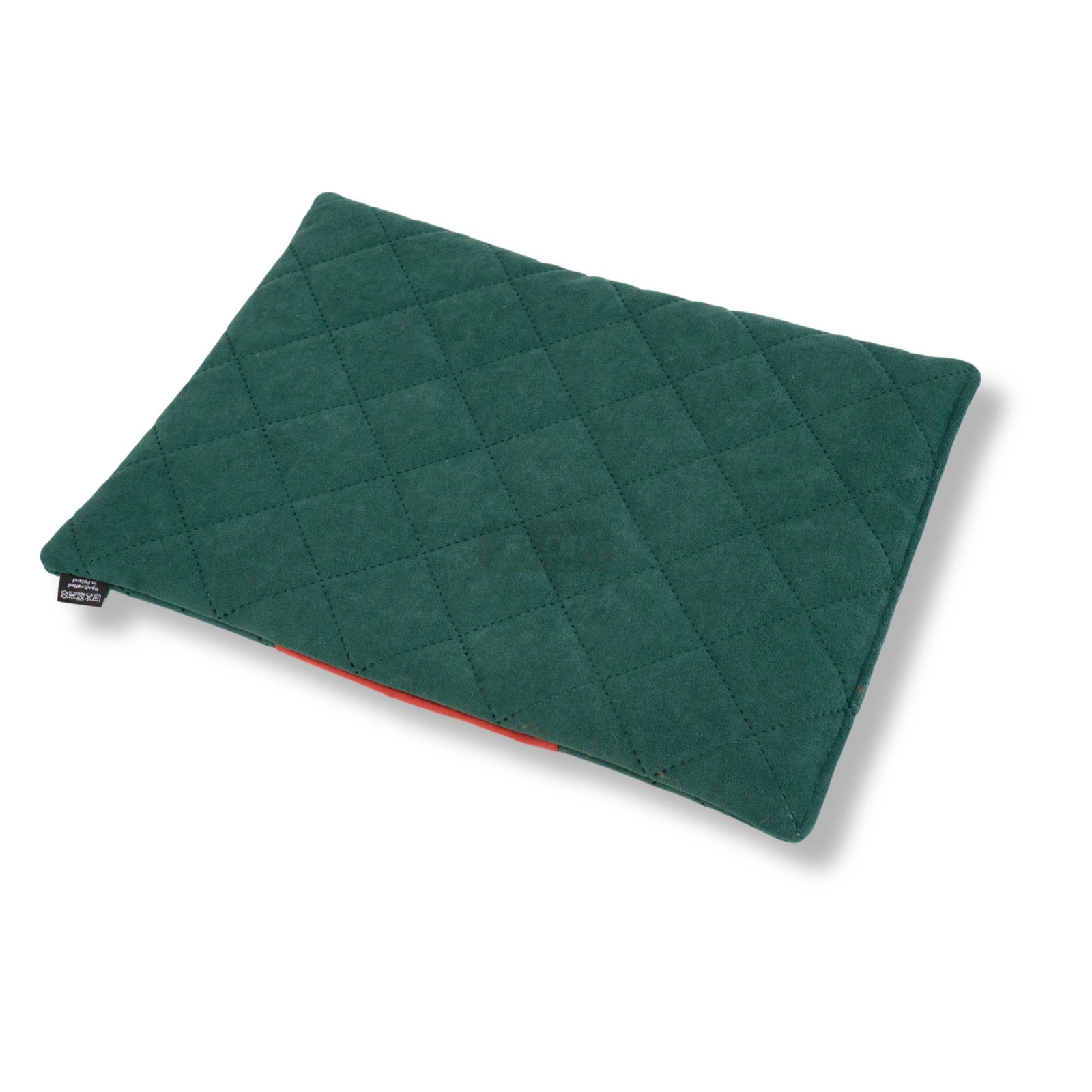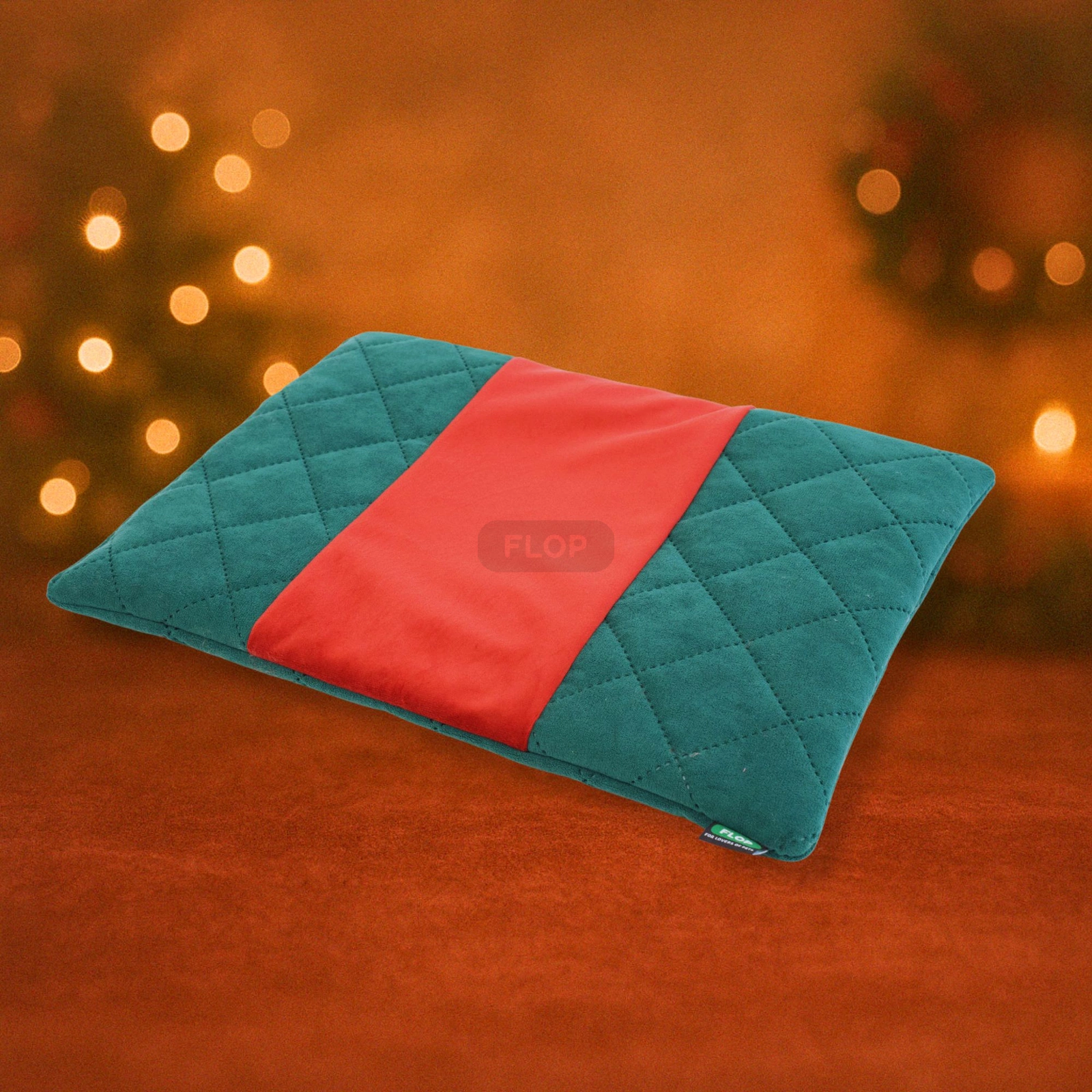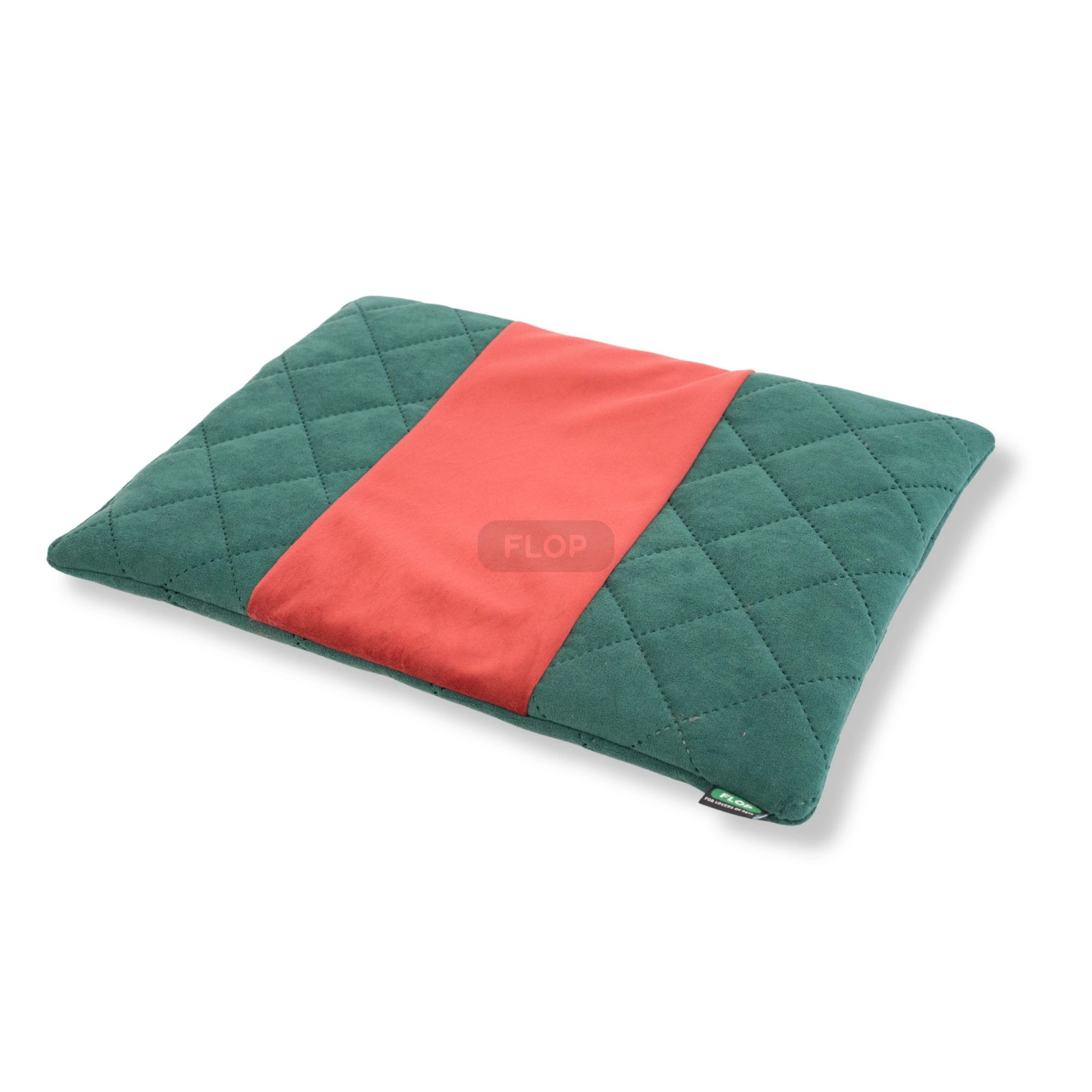 Edycja świąteczna 2025 została wykonana z połączenia dwóch luksusowych tkanin tapicerskich Magic Velvet – pikowanej w kolorze głębokiej zieleni oraz gładkiej, ciepłej czerwieni inspirowanej barwą świątecznego grzanego wina. Wnętrze wypełnia warstwa miękkiej owaty, która zapewnia komfort, elastyczność i izolację od chłodnego podłoża.