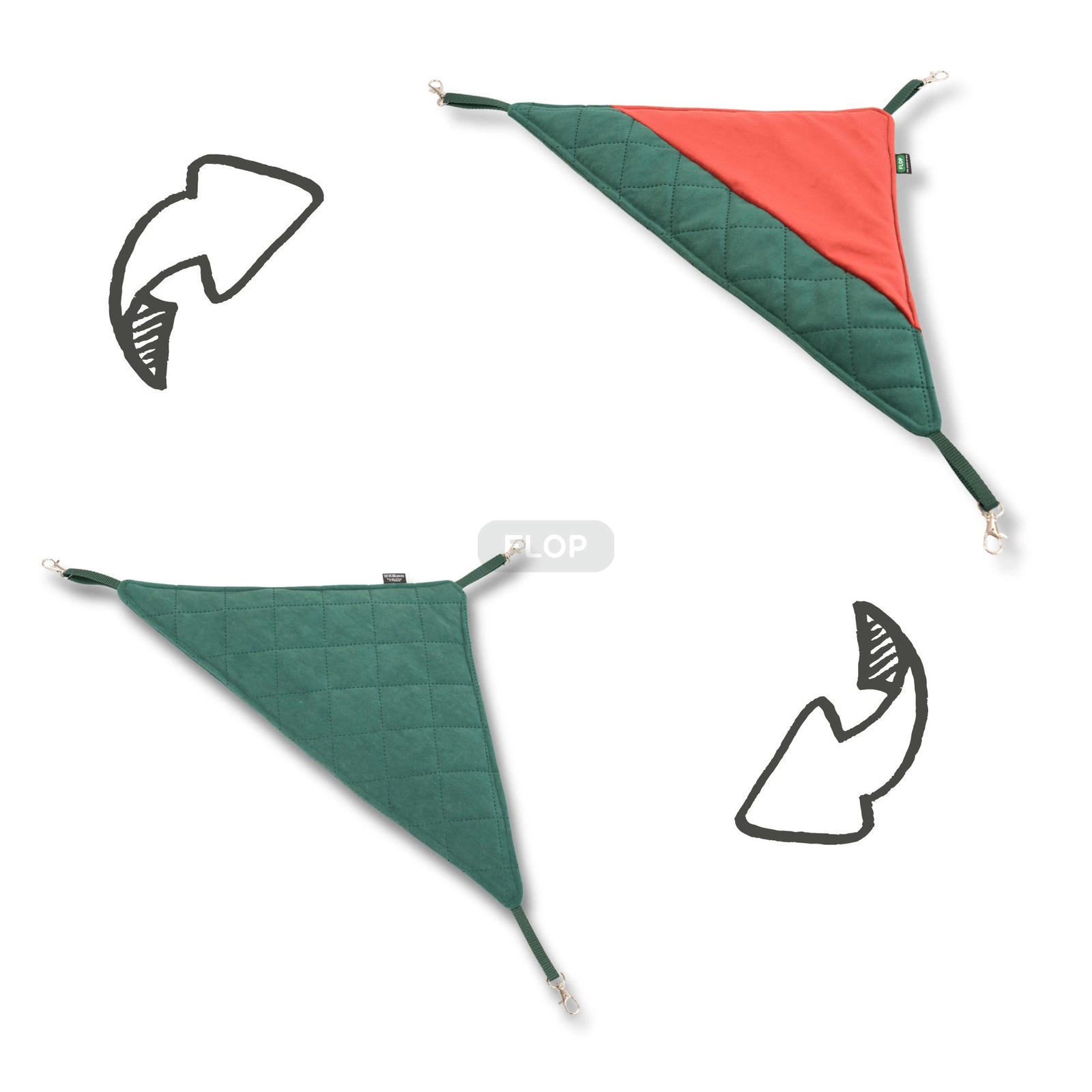Kolekcja FLOP Święta 2025 to połączenie przytulności, elegancji i funkcjonalności. Pikowana zieleń i aksamitna czerwień tkaniny Magic Velvet nadają wnętrzu klatki wyjątkowego, świątecznego charakteru. Każdy produkt z tej serii – śpiworek, paśnik, hamak czy materacyk – tworzy spójną i estetyczną całość.